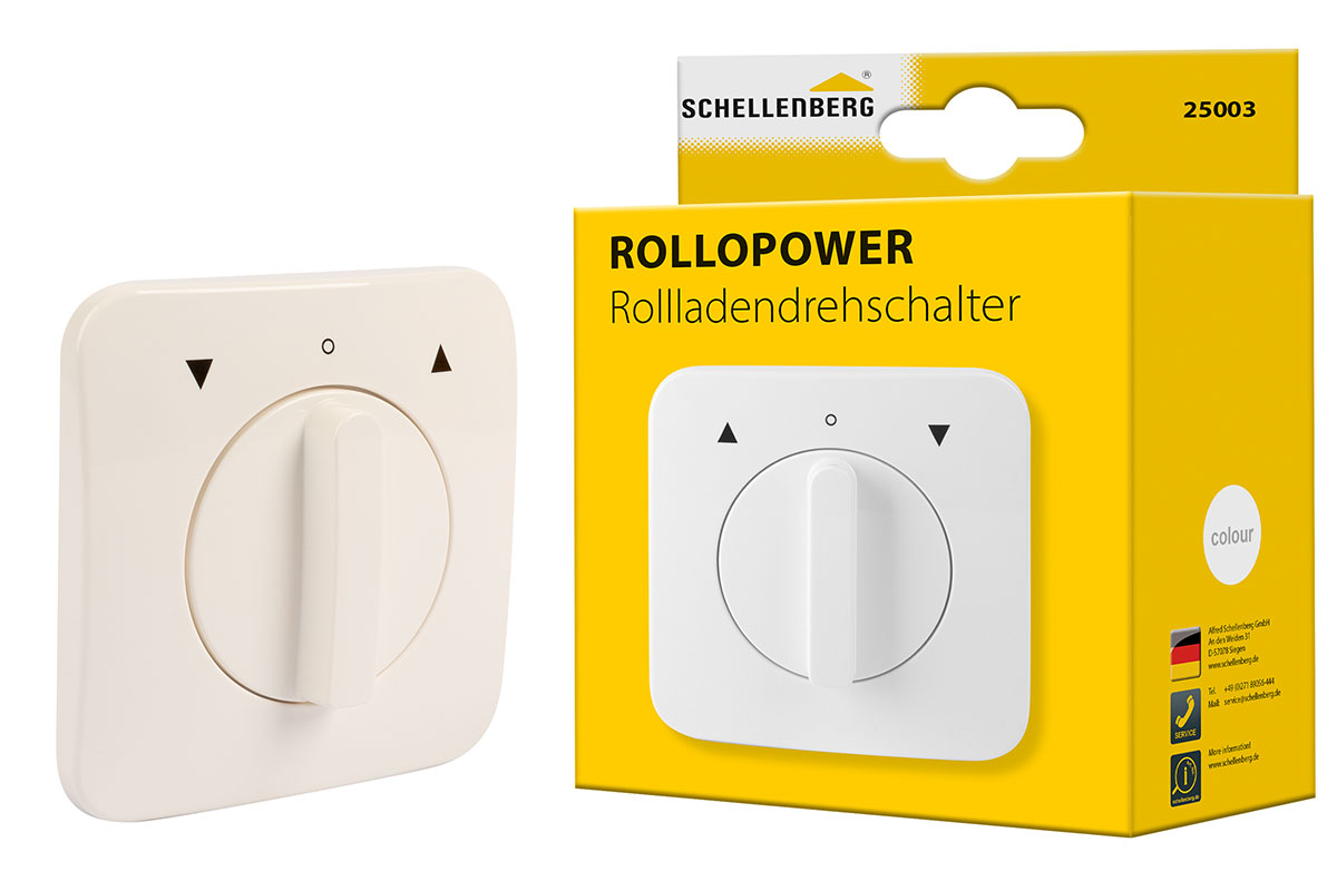 Mit dem Schellenberg Rollladenschalter steuerst du deinen Rollladen-, Raffstore- oder Markisenmotor bequem manuell oder neigst die Lamellen deines Raffstores. Der Rollladenschalter bietet die Möglichkeit, mühelos zwischen einer Tast- oder Rastfunktion zu wechseln, sodass du deine gewünschte Steuerungsmöglichkeit wählen kannst. Die Tastfunktion sieht vor, dass der Rollladenschalter zum Erreichen der gewünschten Endlage festgehalten werden muss. Bei der Rastfunktion hingegen rastet der Schalter ein, bis die gewünschte Endlage erreicht wurde. Der Knebelschalter wird in trockenen Innenräumen in einer Unterputzdose mit einem Durchmesser von 60 mm montiert. Er verfügt über eine hohe Kompatibilität und ist für mechanische oder elektronische Rollladen-, Raffstore- oder Markisenmotoren von Schellenberg oder anderen Herstellern geeignet, die für eine Verwendung mit Rollladenschaltern freigegeben sind.